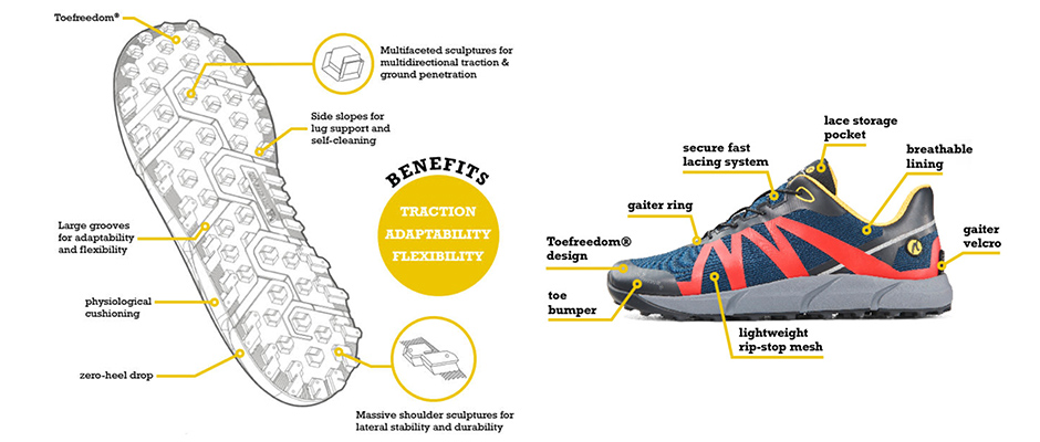 Joe Nimble’s Functional Footwear design concept is based on the principle of toefreedom®, which provides the runner with an increase in stability due to extra room for the big toe to anchor, stabilize and control the foot. The rest of the body can relax, move efficiently and avoid overuse and unnatural stresses on joints and muscles which can cause pain and injury.